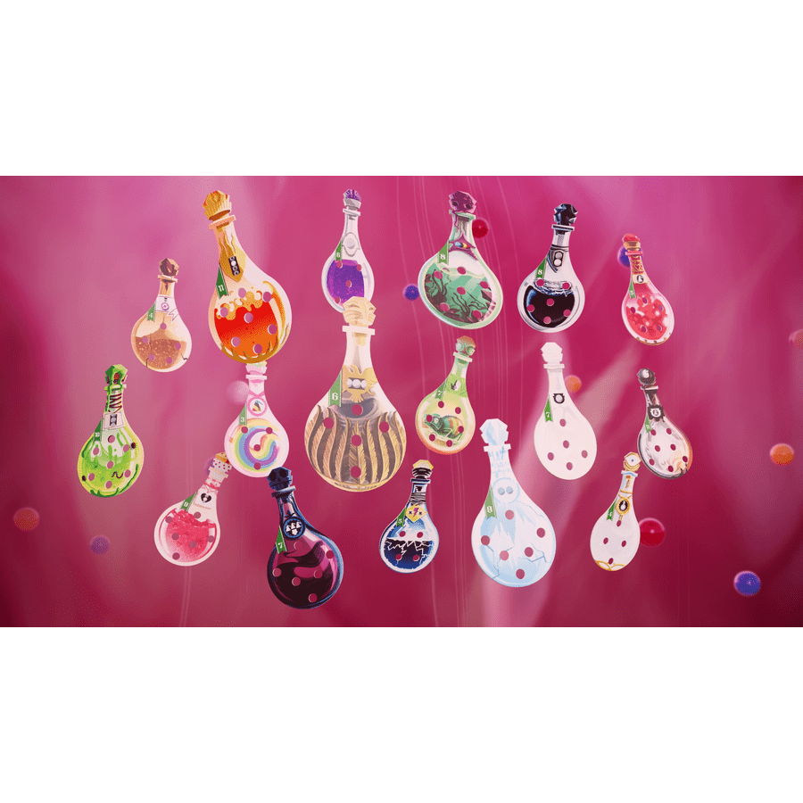 Potion Explosion celebrates its 10th anniversary with a bang! This lush big box edition of the marble-drafting, tonic-brewing classic includes all the components from the core game, both The Fifth Element and The Sixth Student expansions, all mini-expansions released so far, as well as a brand new unique Potion, while also upgrading all tokens to wood.
