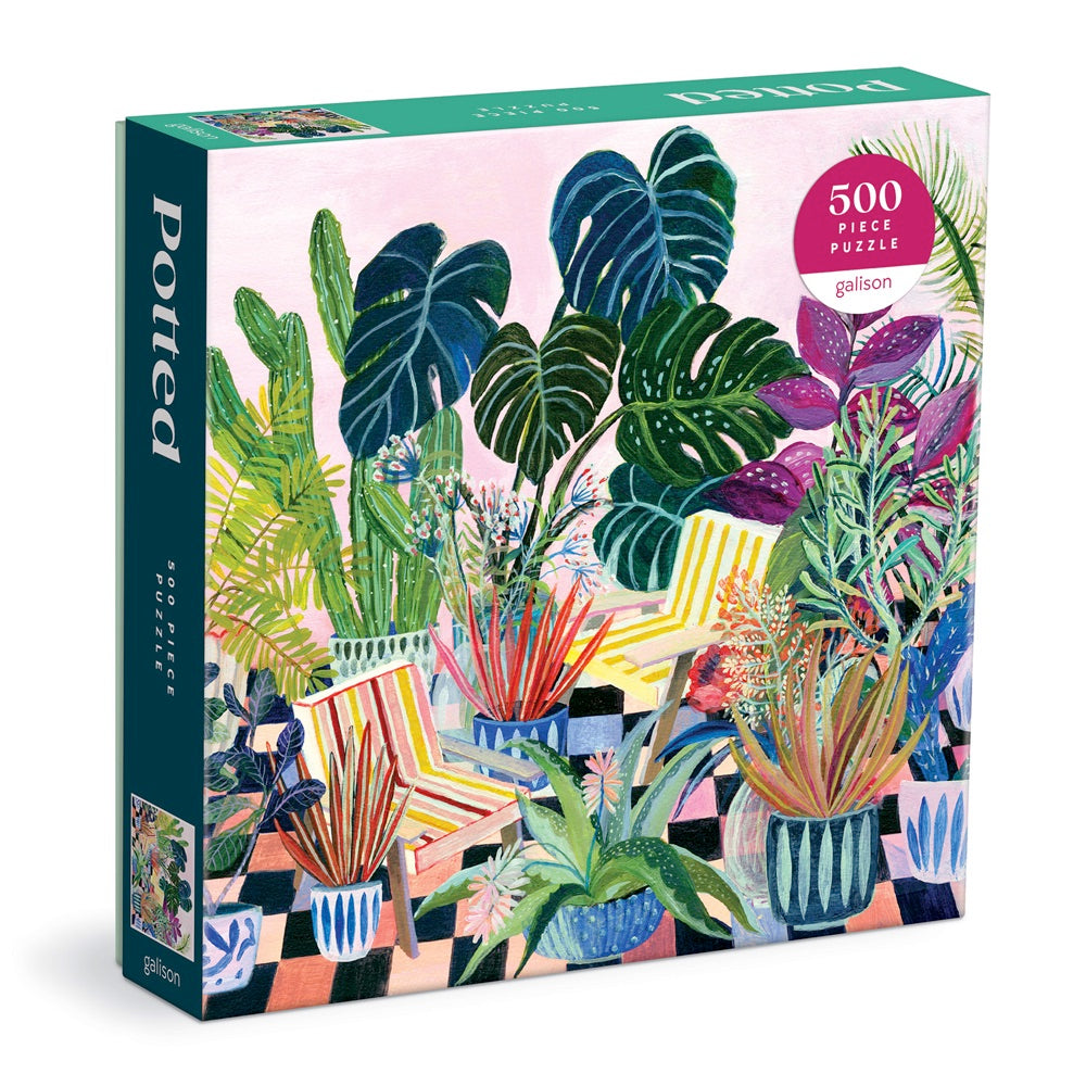 Potted 500 Piece Puzzle by Galison highlights wonderfully illustrated small and tall potted plants, a must for anyone trying to bring a little greenery into their home. Galison puzzles are packaged in matte-finish sturdy boxes, perfect for gifting, reuse, and storage.