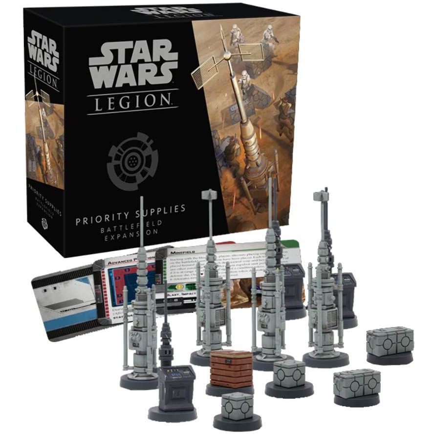 Bring your battlefield to life with the twelve new objective miniatures introduced in the priority supplies battlefield expansion for Star Wars: Legion! here, you’ll find an assortment of Comms stations, vaporators, and crates that you can use to mark objectives or simply use as terrain to decorate your battlegrounds. As these miniatures reshape the physical surface of your battles, three new battle cards give you new options for objectives, deployment, and conditions. With the miniatures and cards in the priority supplies battlefield expansion, you can reshape your games of Star Wars: Legion and enter the galactic Civil war like never before.
