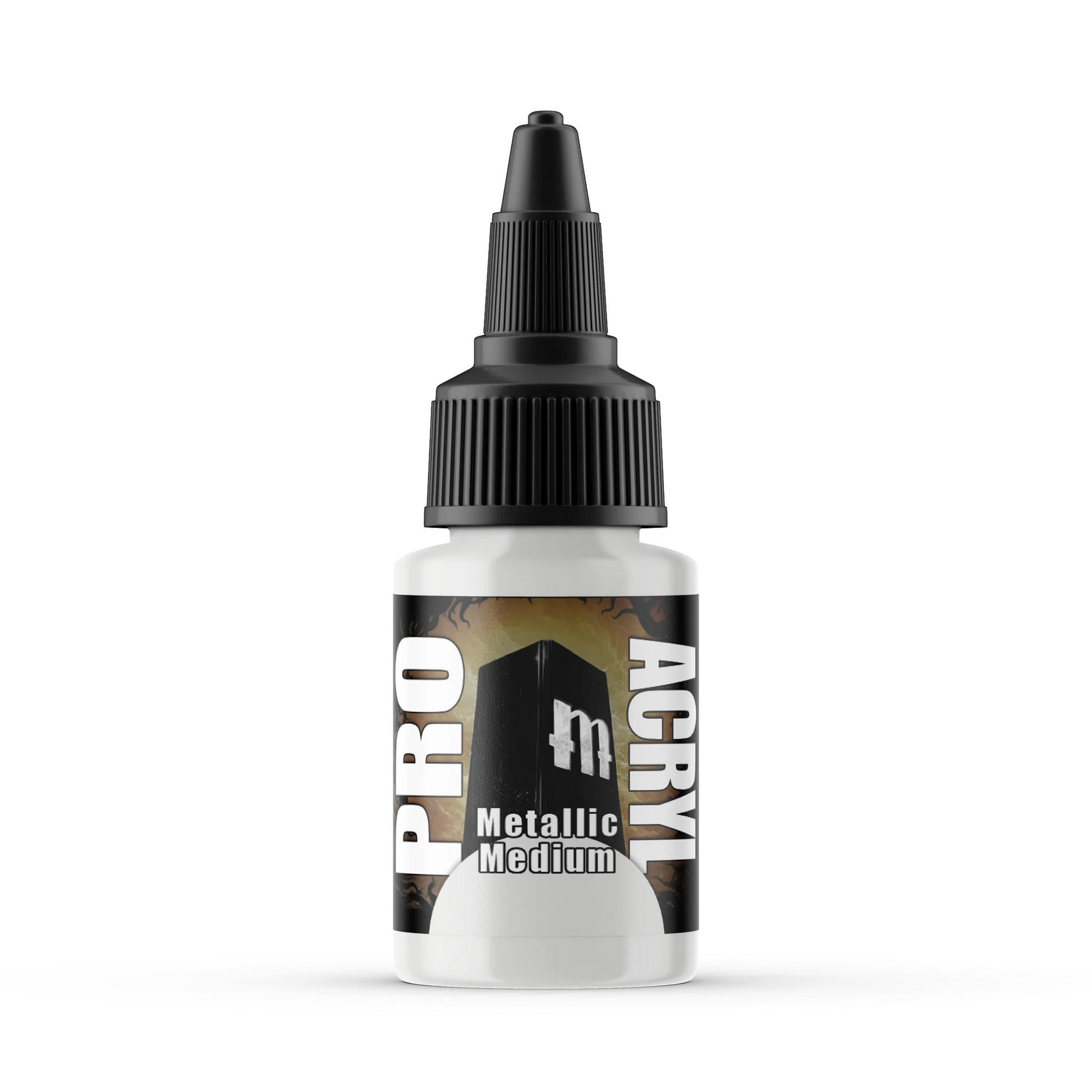 Metallic Medium is a special blend of pigment and metal flake that not only gives you the brightest "white metal" for painting highlights and such, but also a great base medium for adding other color to for creating your own metallic colors. We recommend using our Transparent line of colors to get super vibrant metallic colors quickly and without reducing the shine of the metallic paint.