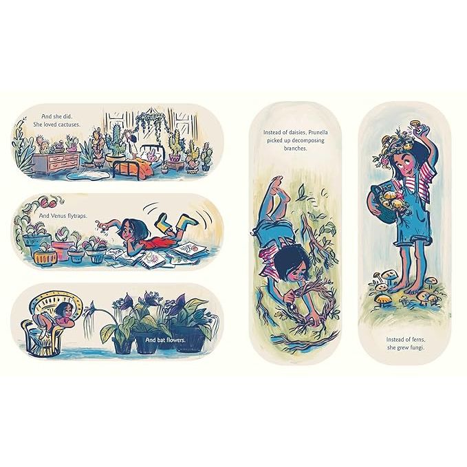 When Prunella is born with a purple thumb instead of a green one like her parents, everyone’s stumped. What could it mean? Before long, they find out. Prunella prefers corpse flowers to carnations, fungi to ferns, and poison ivy to petunias. The stickier and scarier the plant, the more Prunella loves it.