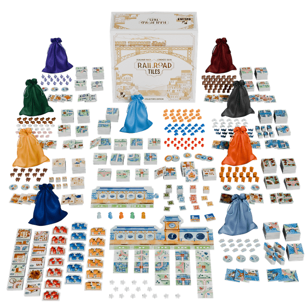 A collector's edition of Railroad Tiles that supports up to 5 players! A single "big box" including all components from the core game, the World Expansion, and all other expansions available as add-ons, as well as additional components to allow for 5-player gameplay for both core game and expansions.