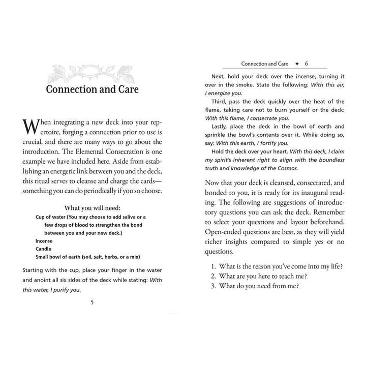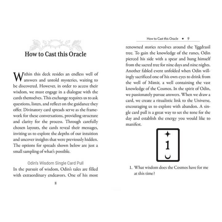 • Offers a ritual for consecrating new decks, six spreads for rune casting, and eight spell cards for a fully immersive experience
