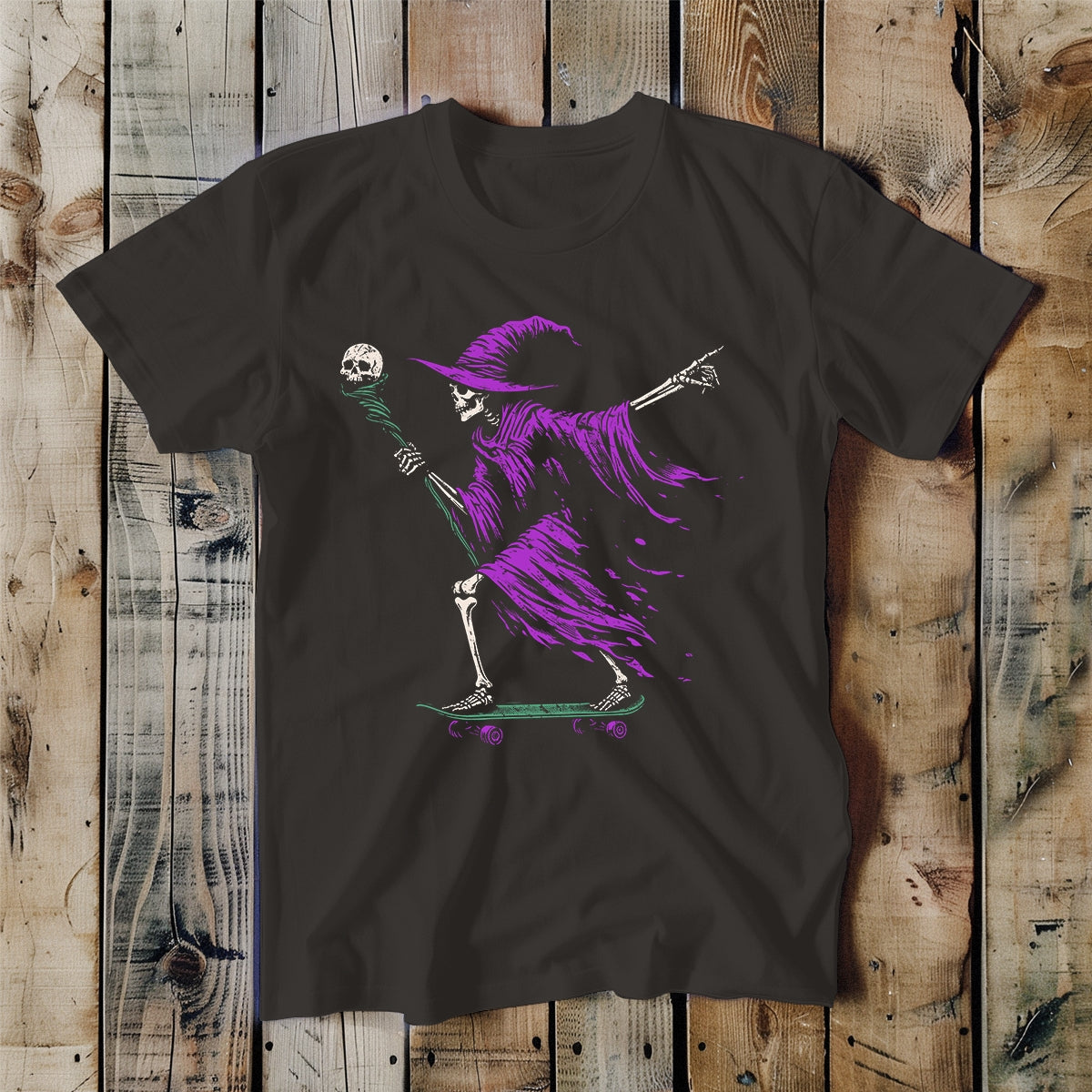 SKATEBOARDING SKELETON WIZARD T-SHIRT