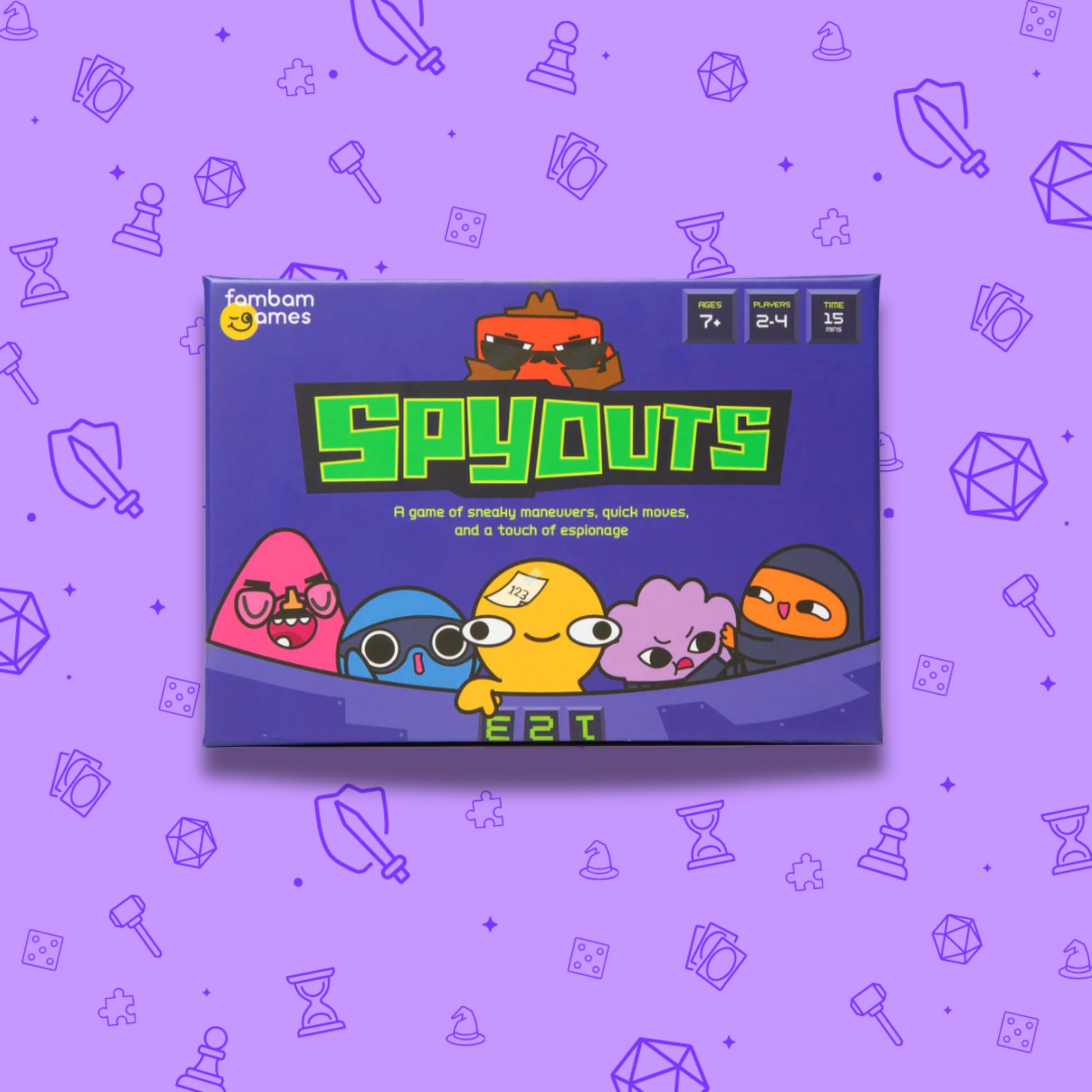 Your favorite neighbors are back as spy trainees in our new game, SpyOuts! SpyOuts is fun, strategic 10-15 minute card game for 2-4 players.
