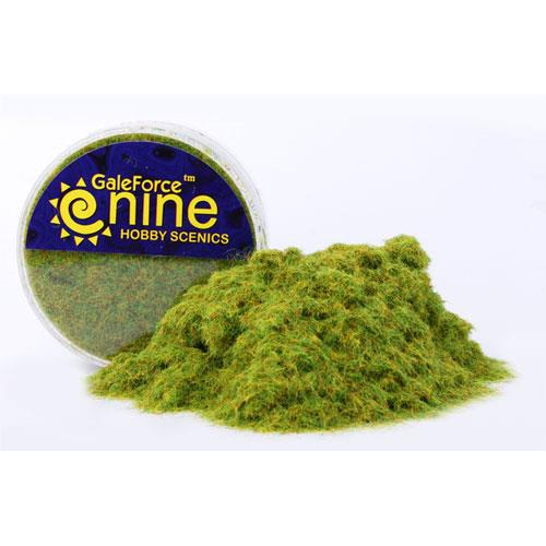 Green Static Grass is a mixture of green, yellow, and red static grass that creates a realistic bright green grass. Green Static Grass is the start of most basing kits. The “standard” finished base is Green Static Grass on top of painted basing grit. It’s a good looking effect, and very easy to do.