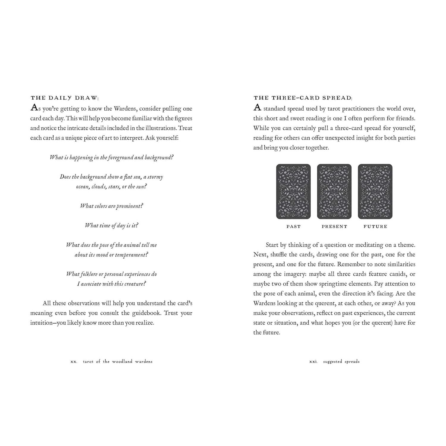 The Tarot of the Woodland Wardens elegantly captures the magic of flora and fauna through the major and minor arcana. Each card is inspired by the classic Rider-Waite-Smith imagery, with the human figures replaced by woodland creatures who share their innate wisdom and spiritual guidance.