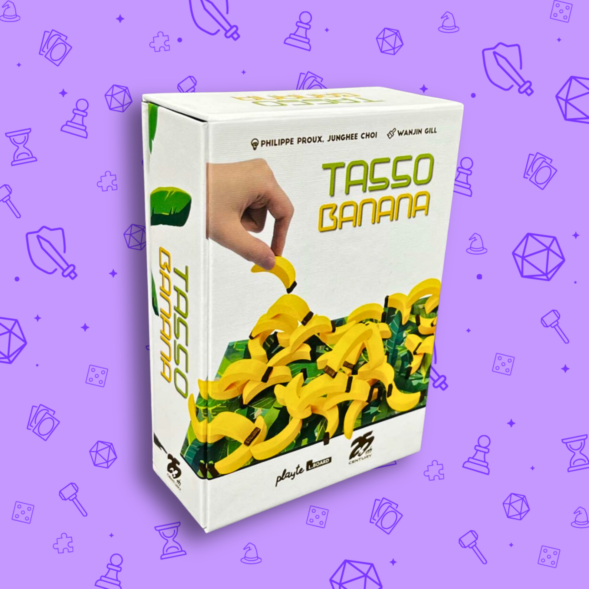 Lots of bananas grow on these trees! Take turns to stack your bananas on the board. If you stack a banana on top of exactly two other bananas, you can take another turn. Place all of your bananas first to win!
