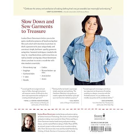 Discover the slow, quiet joy of sewing clothes by hand in this one-of-kind guide. Featuring step-by-step, illustrated instructions, this hand-sewing course-in-a-book shows you how to create nine wardrobe staples, including a t-shirt, button-up, and jeans, using simple hand-sewing and hand-stitching techniques. Author Louisa Owen Sonstroem shares her sustainable, empowering, and portable craft with gentle encouragement and guidance.