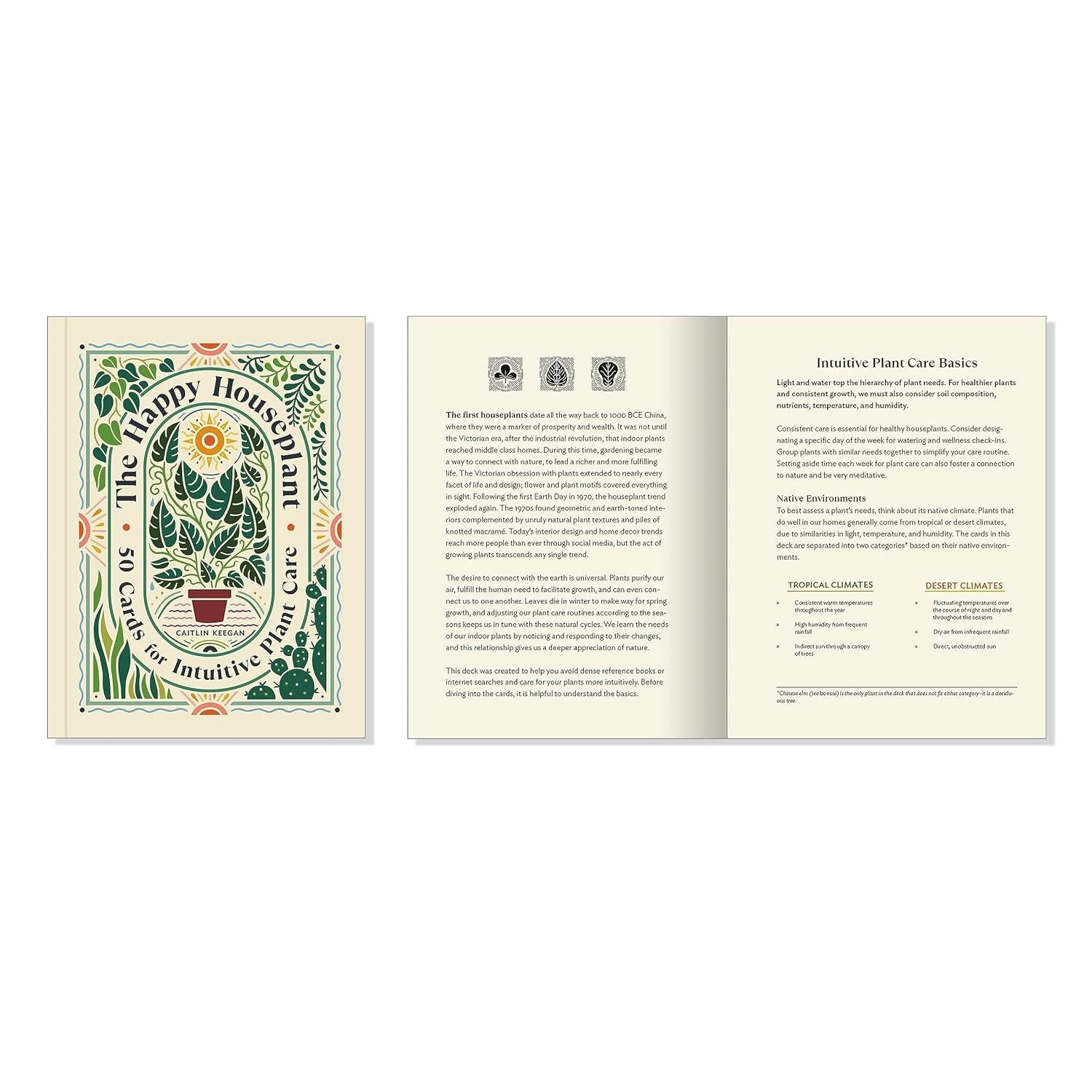 Shuffle through fifty indoor scenes featuring popular plants, from juicy curio and calathea to prickly pear cacti, bubbly succulents, and towering philodendrons and monstera. Each card provides specific plant care instructions including tips on light, soil, and water, as well as pet safety, fertilizer, and humidity. Use the booklet to learn about the most important components of plant care, the difference between desert and tropical environment plants, how to problem solve dry leaves or lack of growth, and the prime placement for your plants based on your home's windows. Each of the fifty cards features a stunning illustrated plant in a unique habitat of its own—on an apartment windowsill, in a greenhouse, or prominently featured in a luxe lounge.