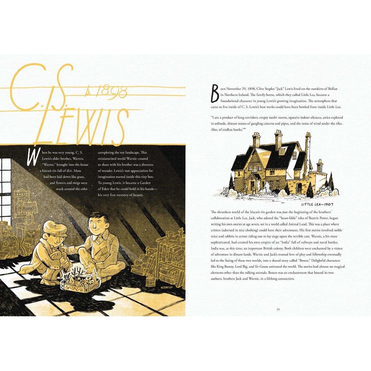Through narrative and comic panels, Hendrix chronicles Lewis and Tolkien’s near-idyllic childhoods, then moves on to both men’s horrific tour of the trenches of World War I to their first meeting at Oxford in 1929, and then the foreshadowing, action, and aftermath of World War II.