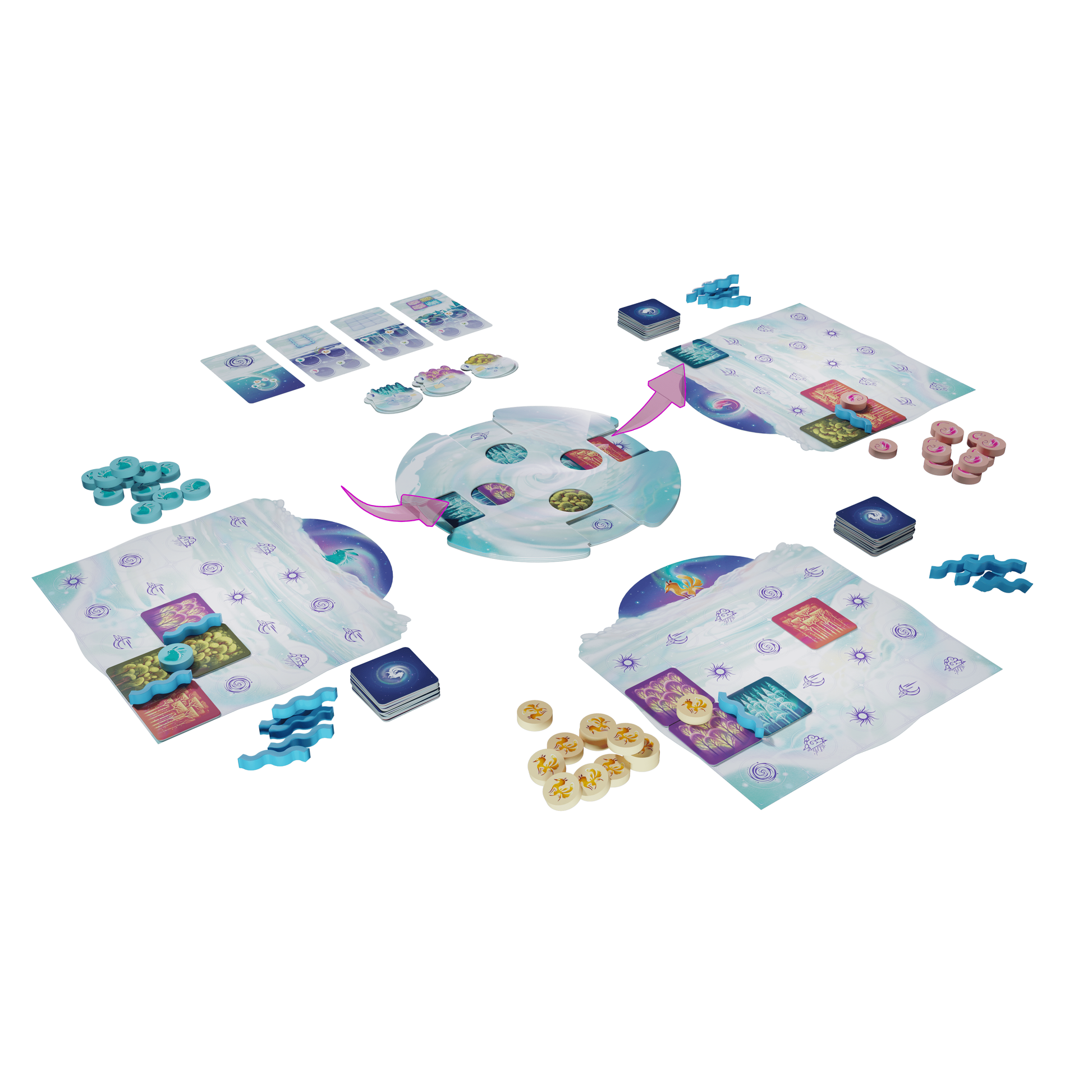 Carefully choose the Forest tiles by sliding them of the central board and arrange them as best you can on your personal board to accommodate your Animal Spirits.