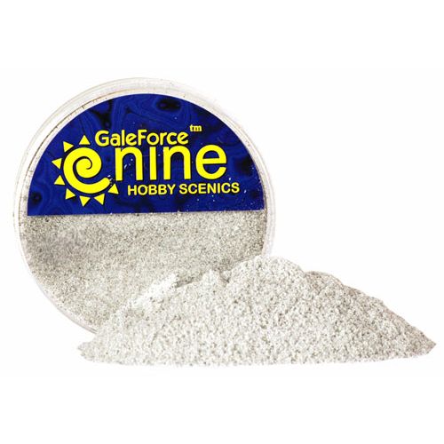 For tundra styled bases, use a light coat of Ash Waste / Tundra flock, topped with small bits of green foliage. Ash Waste / Tundra flock does a really good job of representing the frozen dirt of the permafrost.
