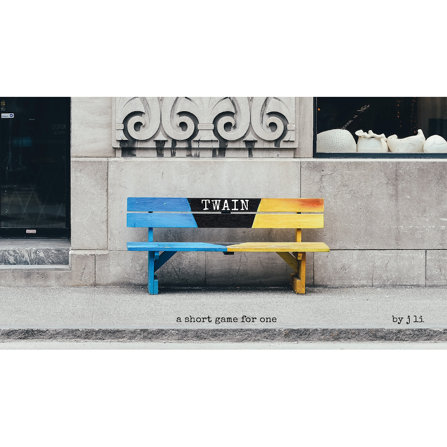 Twain is a mythical layer on top of your real life. You play yourself, with a few changes. Answer prompts as if they were true by writing directly on the beautiful game materials. Then, play out a live scene in a personally meaningful outside space to explore your relationship with a fictional twin who grew up to do all the magic that you never got around to. The instructions begin, "Find a pen you love..." The full game takes approximately an hour, sometimes a little longer or shorter.