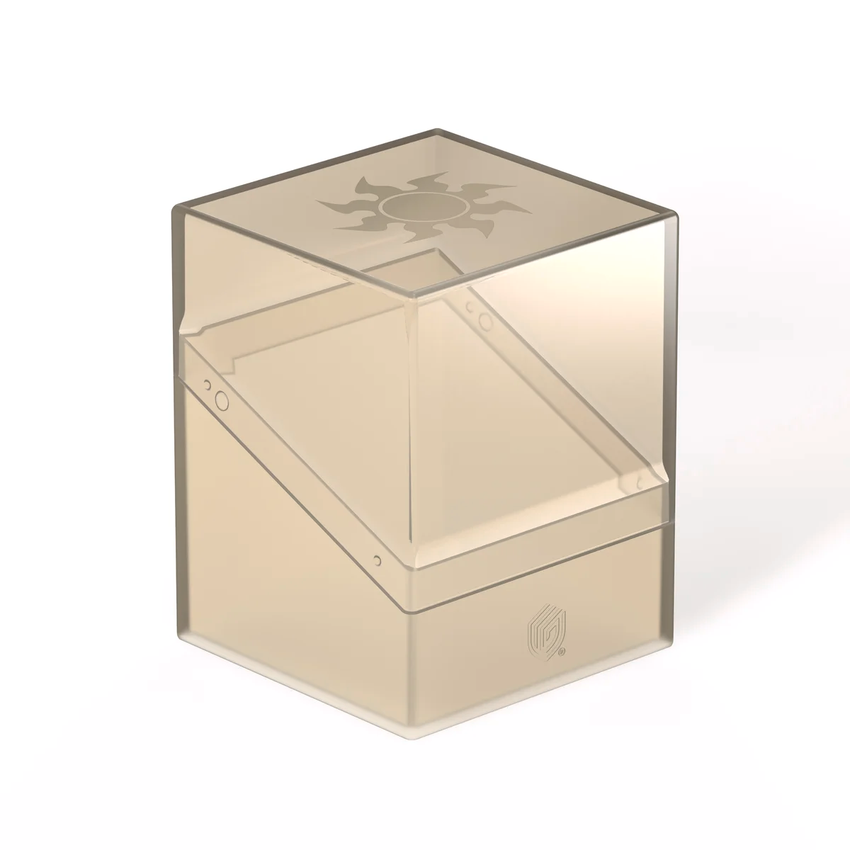 Ultimate Guard's Boulder 100+ Hybrid combines the completely transparent top of the Boulder Clear with a soft-touch base in the style of the original Boulder. The officially licensed MTG deck box is easy to open, but offers reliable protection for your cards thanks to its sturdy case and secure closure. The Boulder 100+ Hybrid holds up to 100 double-sleeved cards and is suitable for all Magic: The Gathering formats such as Commander (EDH), Standard or Modern.
