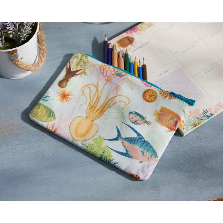 Featuring beautiful images of the undersea world, this accessory pouch is the perfect catchall to store pens, pencils, makeup, earbuds, chargers, and all your essential accessories.