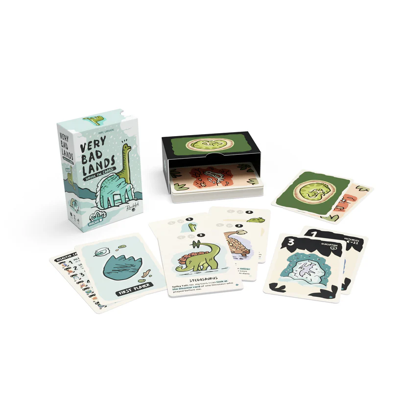 In Very Bad Lands, you will play different Dinosaur species battling for your very survival. Disasters are a constant threat, so you’ll have to make the right choices to avoid them!
