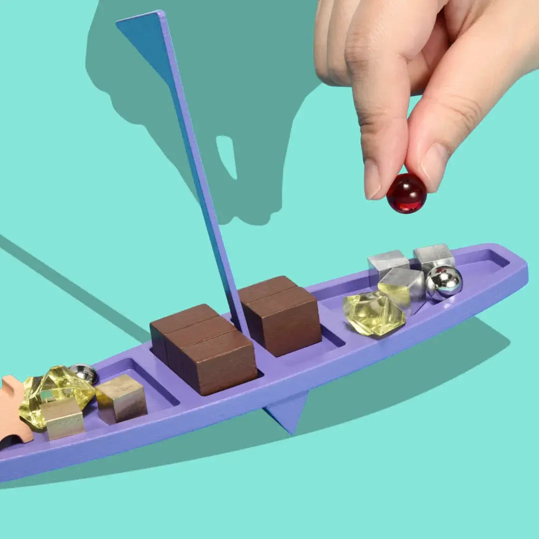 Take turns loading your cargo onto the ship, but take care! If it tips, you’ll have to take a penalty chest. It's an entertaining game where balance is everything. Made from quality materials like brass, glass, and wood, each piece has a different weight, making every choice a fun balance of guessing and strategy.