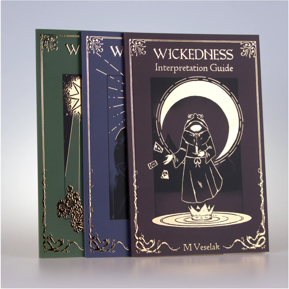 Wickedness is played in three acts: in the first, players discover their coven, the sanctuary they call home, a mundane fantasy nation, and the treacherous underworld lurking beneath it. Each player will be assigned one of the three coven archetypes (The Pure Heart, The Old Soul, and The Wild Spirit) by the tarot deck, and then together they’ll create the world where they live, and the underworld's strange laws and denizens. Finally, they’ll ask heavy-hitting questions about the covens’ relationships to one another.