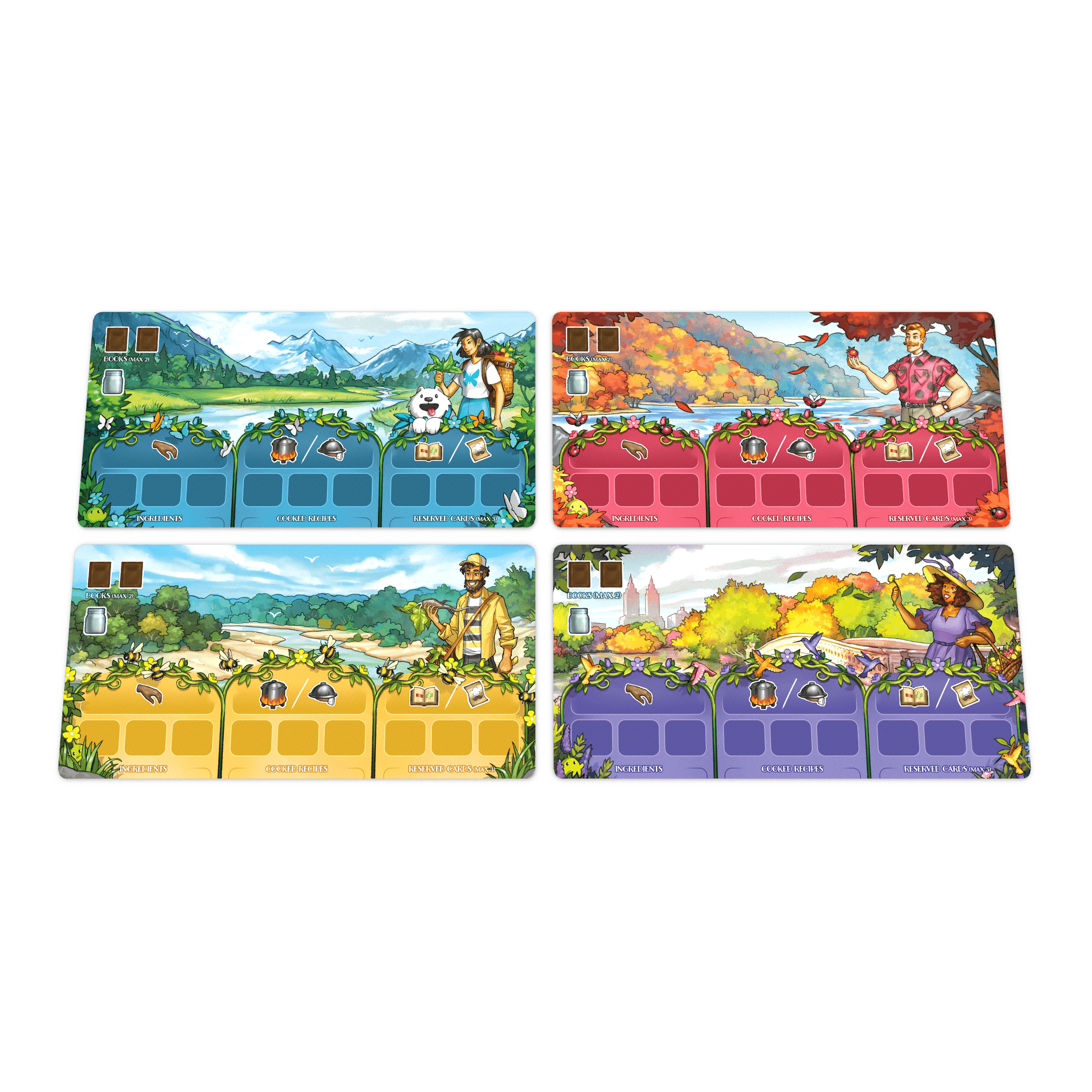 Travel to a variety of real-life locations, carefully planning your moves to gather ingredients, upgrade your skills, complete recipes, and serve up your creations to a host of hungry guests. Personalize your foraging strategy to suit your unique playstyle and turn those tasty dishes and satisfied guests into valuable victory points. The player with the most points at the end of the game wins!