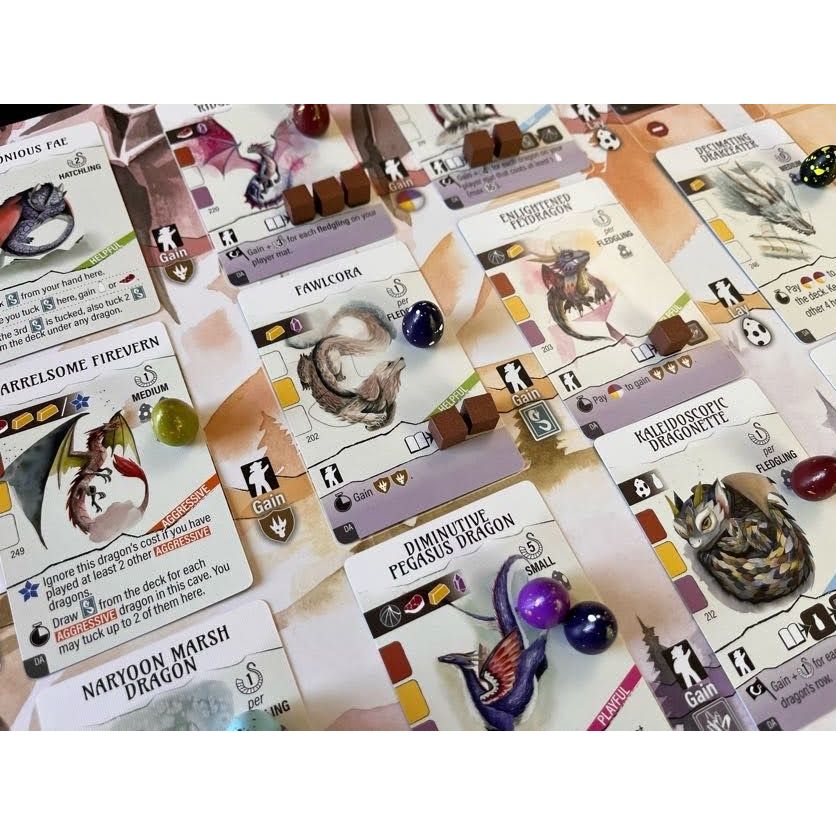 As a budding dracologist, you open an academy for fledgling dragons to achieve their full potential! The expansion to Wyrmspan adds a wide variety of new dragons and caves, objective tiles, dragon guilds, and a new round tracker that presents you with an income choice when you pass for the round. Welcome to Wyrmspan: Dragon Academy, designed by Connie Vogelmann and illustrated by Clémentine Campardou!
